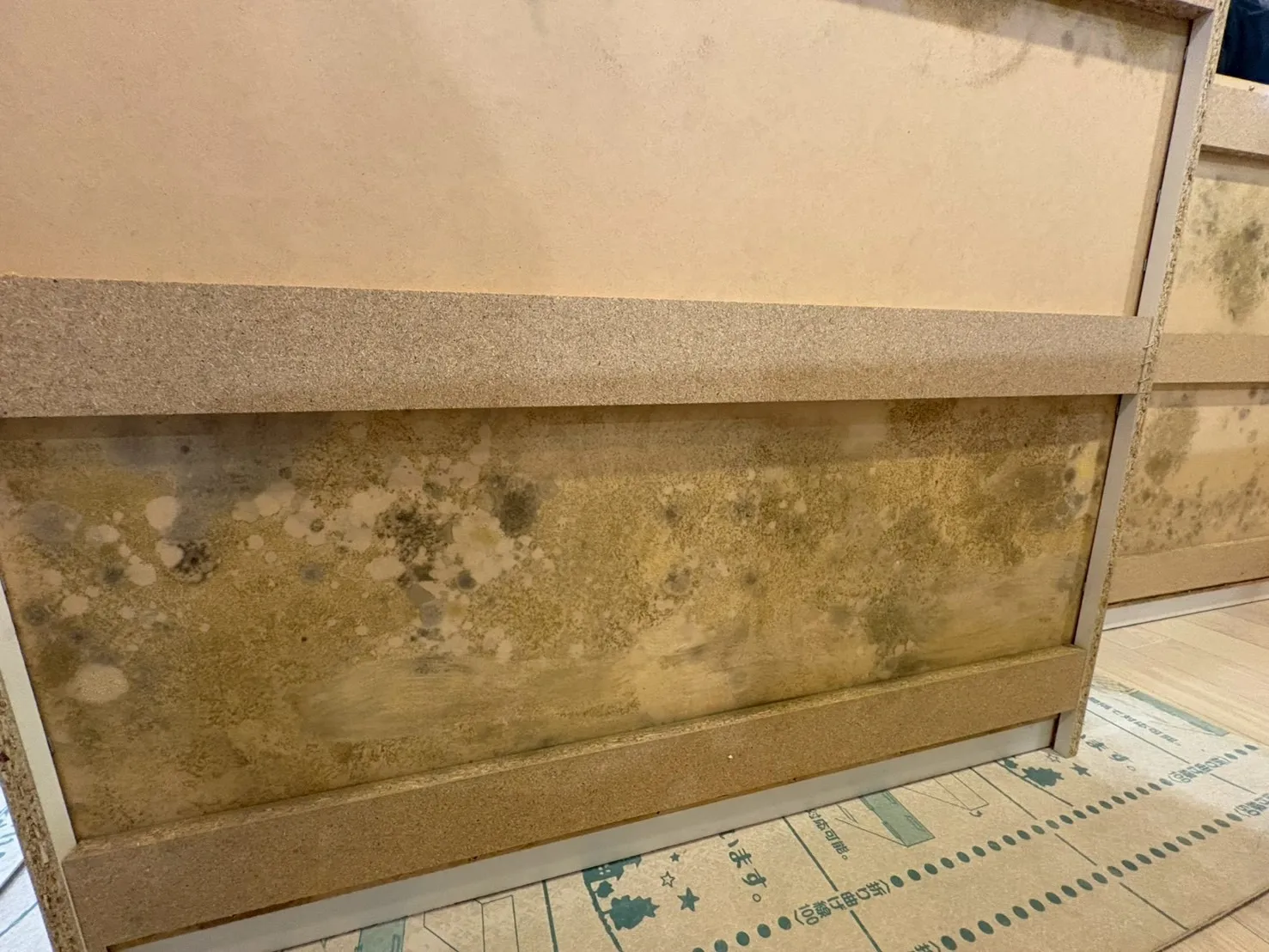 しかしその換気扇こそが、床下の空気を室内に引き込む“ポンプ”の役割を果たしていたのです。負圧によって床下の湿った空気やカビの胞子がキッチンに流れ込み、目に見える部分にカビを発生させていた、という構図でした。